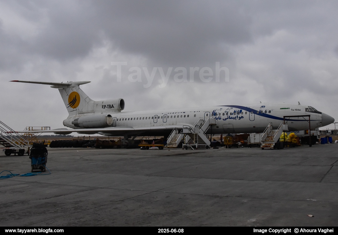 در مارس 1993 [مطابق با اسفند 1371] توسط هواپیمایی ماهان خریداری و مدت 7 سال با رجیستر EP-ARG برای این شرکت پرواز کرد. در شهریور 1379 با رجیستر EP-CPO توسط کاسپین خریداری شد و تا 30 بهمن 1389 که به دستور رئیس وقت سازمان هواپیمایی کشوری همه توپولفها برای همیشه زمینگیر شدند، برای این شرکت پرواز کرد. سپس جهت نگهداری به محوطه مرکز آموزش علمی کاربردی هواپیمایی ساها در فرودگاه مهرآباد منتقل شد. این مطالب از وبلاگ طیاره کپی شده است.